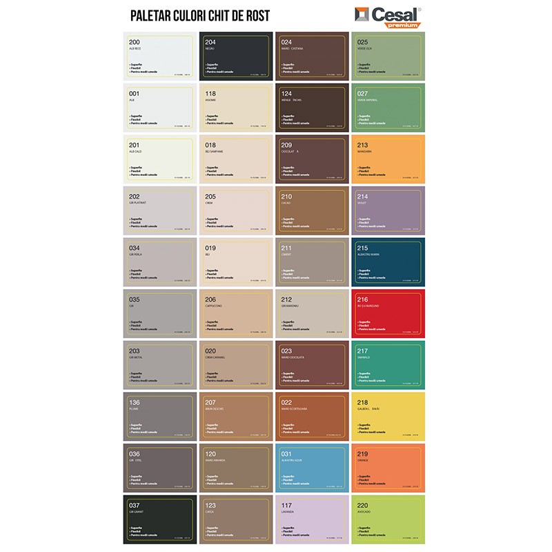 CESAL PREMIUM CHIT DE ROSTURI este utilizat în lucrări de placare cu gresie, faianță, marmură, piatră naturală, pentru umplerea rosturilor până la 7 mm, la interior sau exterior, in medii umede sau uscate, la temperaturi între -15°C și +40°C.